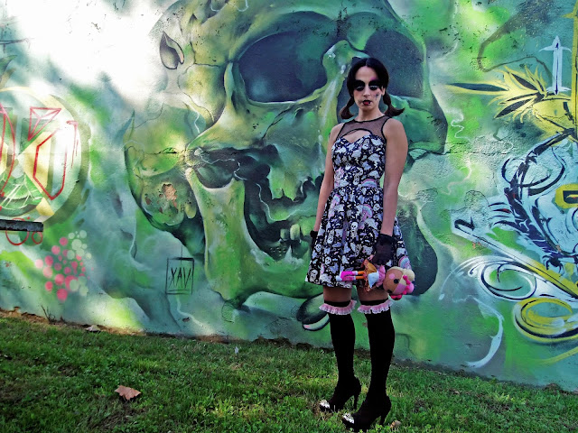 En este caso, este vestido de la marca Hell bunny me ha inspirado para crear la idea de una muñeca rota, pero veis que es un vestido de corte patinadora totalmente ponible si queréis dar un toque gamberro a vuestro estilismo.